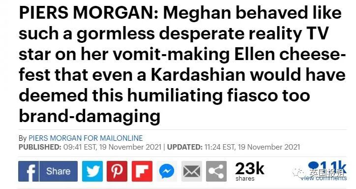 从他所写文章的字里行间,能看出他对梅根的愤怒,他觉得梅根搞这种闹剧是对王室形象的颠覆,也是对王室声誉的破坏。