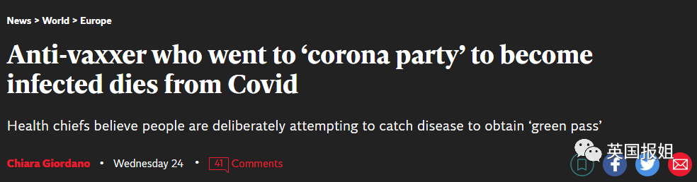 上个月,意大利一名男子在参加“新冠派对”后死亡,参加派对的其他几个人在重症监护室里挣扎。