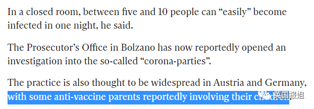 这种通过故意感染来获得通行证的做法,在德国和奥地利也很普遍,据报道,一些反疫苗的父母会让他们的孩子也参与进来。