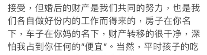 父母帮他离婚转移财产的时候,则躲在父母身后。