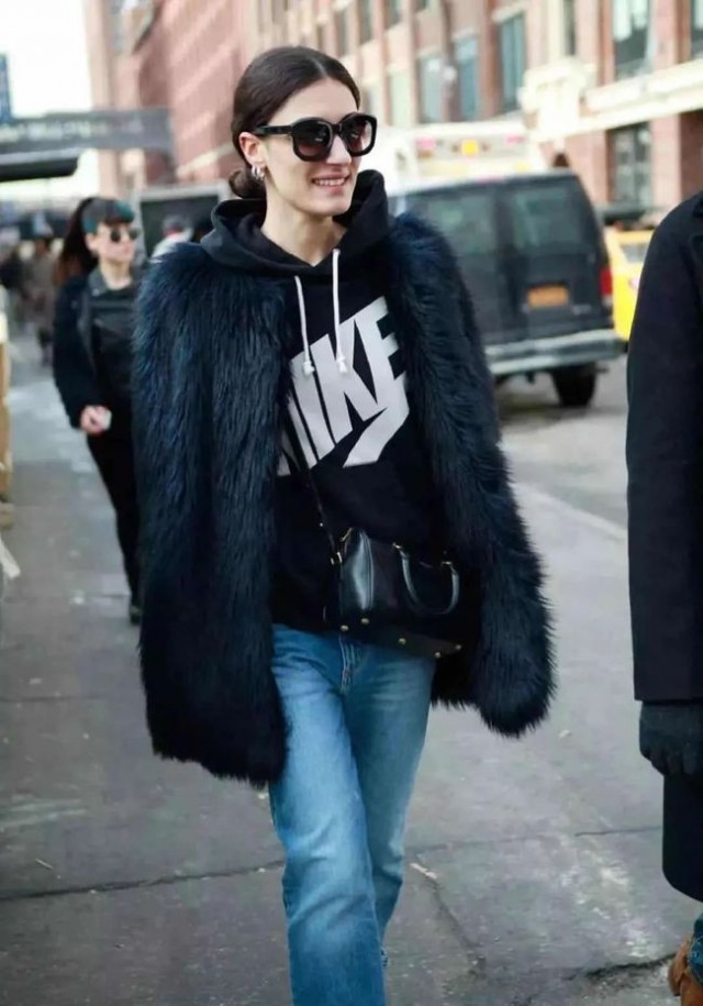 連帽衛衣搭配毛毛外套,看起來就很暖和!