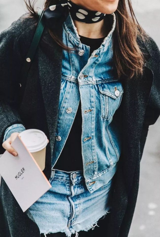 牛仔外套是經久不衰的單品,美式風情濃厚還帶有青春感,搭配大衣能完美的綜合正式和自由的氣質,混搭感超強~