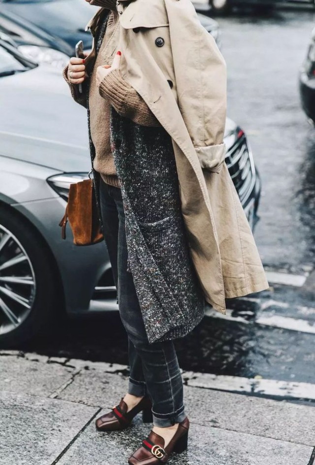 如果你覺得牛仔外套不夠保暖,那你壹定要試試在大衣裡疊加針織開衫,絕對幫你打開時尚的新大門!