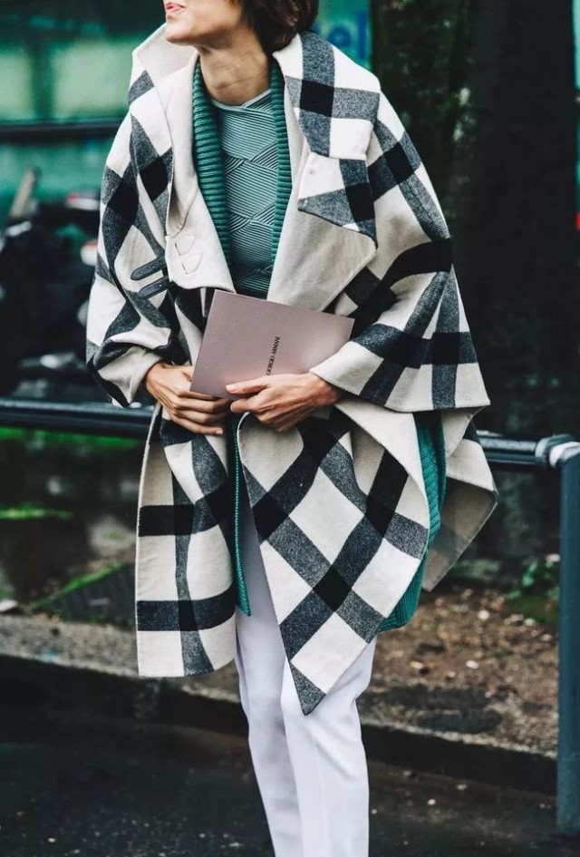 就連壹向挑搭配的斗篷大衣,也能輕松被針織開衫hold住,足以見得百搭程度了!