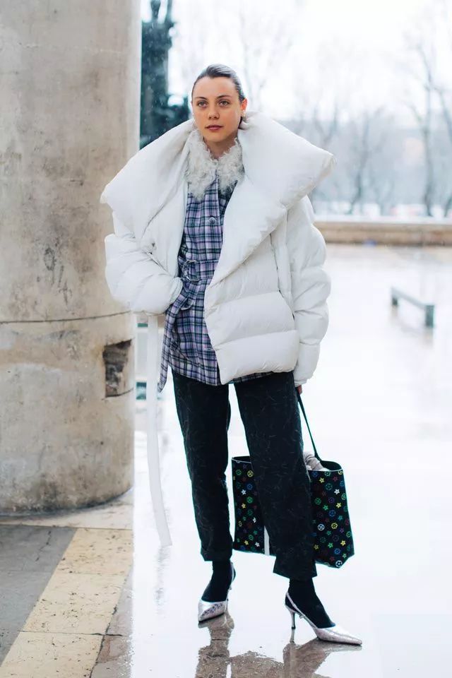 而白色的羽絨就更加不挑剔了,不管是格紋西裝還是條紋西裝,都能瞬間match住,也太個性了吧~