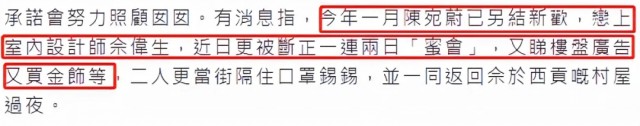 而近來陳宛蔚與佘偉生更是相當甜蜜,有消息指他們接連兩天私下密會,相約去看樓盤廣告,還壹起買了黃金飾品,毫不避諱地當街親密,疑似好事將近。
