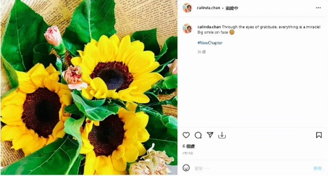 此消息曝光之後,陳宛蔚之前發布的社交動態被網友扒出,她曾兩度在網上分享自拍美照以及鮮花照,並配文“New Chapter(新篇章)”,疑似透露了即將開啟新戀情。