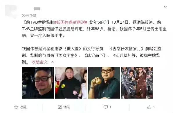 作為TVB金牌監制,錢國偉的去世震驚了整個香港娛樂圈,多位知名藝人為其送花圈,葬禮當天來送他最後壹程的人幾乎要擠爆整個靈堂。