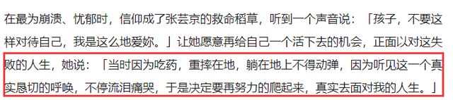 雖然張芸京表面上看起來很樂觀開朗,但實際上她內心也曾有過痛苦萬分的時刻,壹度喝藥想輕生,試圖用自殺來解決問題。
