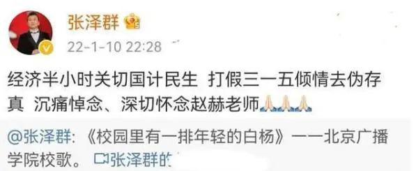 張澤群評價他:" 大氣沉穩主持,謙和低調為人 ",願趙赫老師壹路走好,為開年我們就失去這樣優秀的央視主持人而痛心。