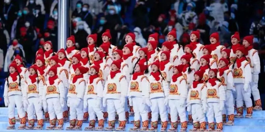 他甚至请来 " 大山里的孩子 ",来自革命老区河北省阜平县山区的 44 名农村孩子,献唱了奥林匹克会歌。