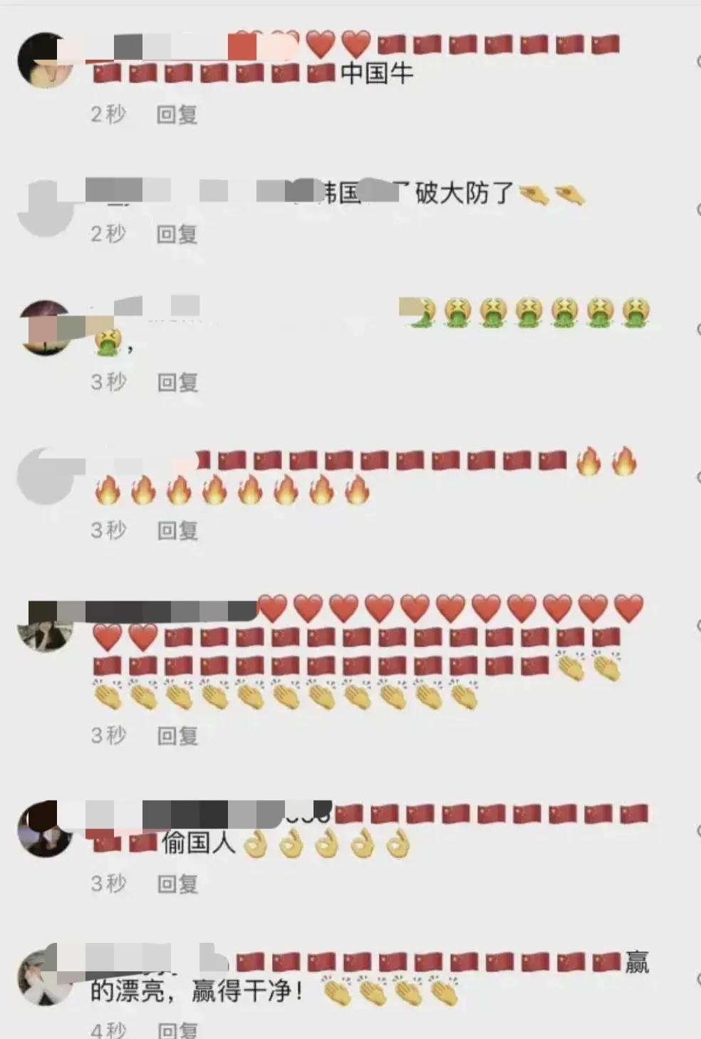全部都是红旗和爱心,与韩网民的刀叉ex等表情符号形成了鲜明对比。