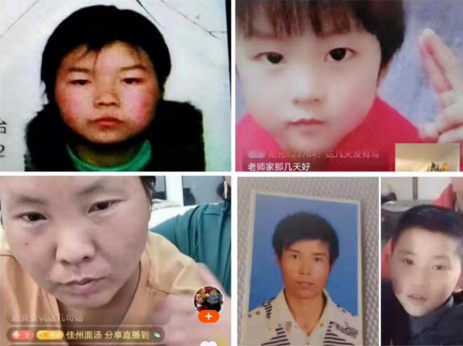 小時候的王國紅(左上),鐵籠女的女兒(右上),王國紅的弟弟(左下),王國紅的兒子(右下)(網絡圖片)