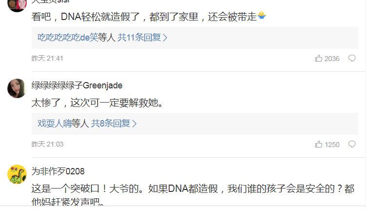 網友5:這是壹個突破口!大爺的。如果DNA都造假,我們誰的孩子會是安全的?都他媽趕緊發聲吧。