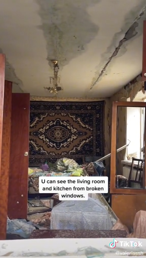 “通过破碎的窗,你可以看到里面的客厅和厨房。”