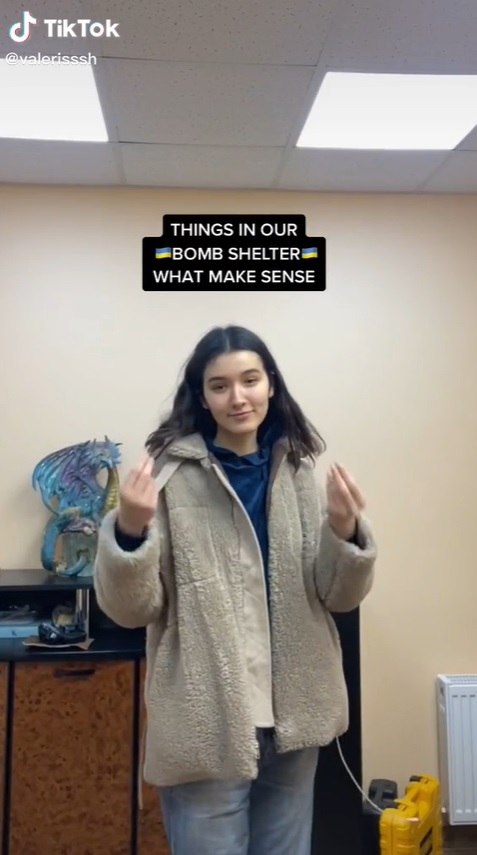 其中一则视频里,瓦莱丽娅介绍了防空洞的环境。