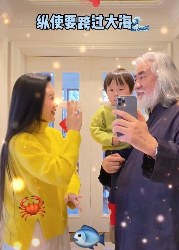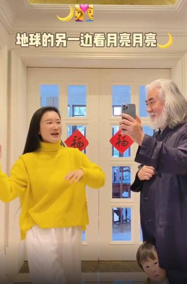 3月10日,张纪中在社交平台晒出和娇妻、孩子互动的视频,并说道:“带着我家的两个小可爱。”