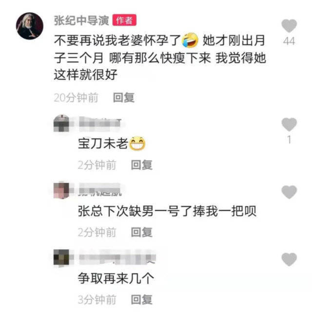 随后张纪中还在评论区辟谣杜星霖怀三胎的传闻:“她才刚出月子三个月,哪有那么快瘦下来,我觉得她这样就很好。