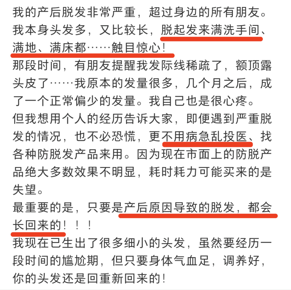 不过杜星霖用自己的亲身经历告诉大家,不要病急乱投医,因为生孩子导致的脱发,后面都会长回来的。
