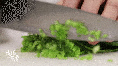 挤干水分后,改刀成碎末。 只取菜梗部分,菜叶部分不要。