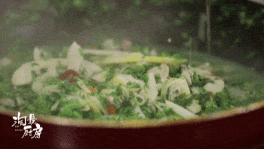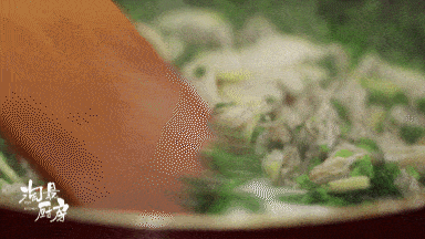 翻炒至笋香味飘出,放入2火锅勺(60ml)高汤。