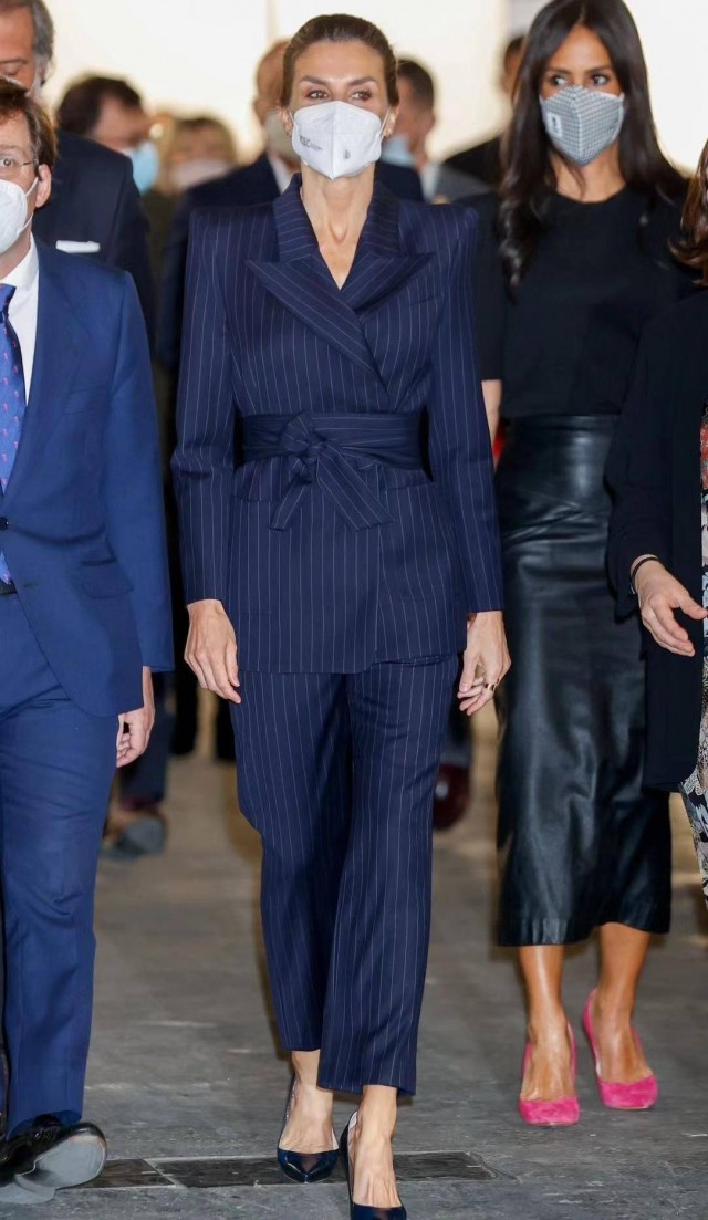 很少見到萊蒂齊亞會穿得如此強勢,這墊肩西裝確實很颯很有型呢。藍色條紋和利落的剪裁,都在無形中為她注入強大的氣場,女王范兒拉滿。