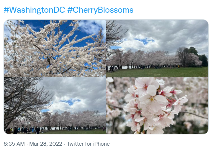 這是櫻花盛開的季節,華盛頓的櫻花也來報道了: