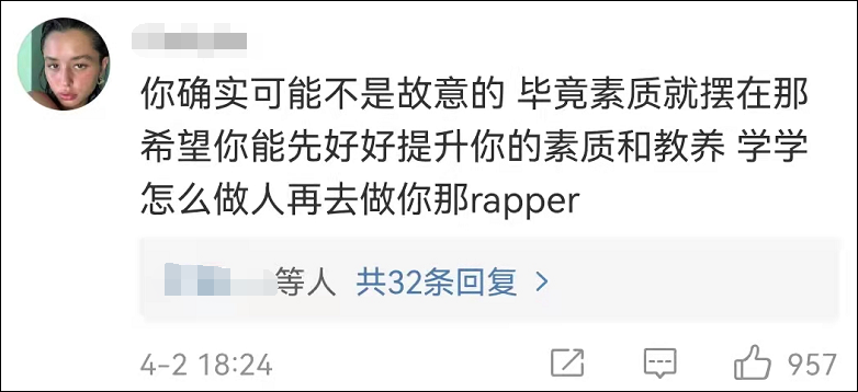 不过,对于@Yvng_Huncho 的这番道歉,许多网友并不买账。不少网友让他先提升素质和教养,“学会做人”,再去当Rapper。另外,网友们也批他和同伴都是“施暴者”,要求他们一起亲自向卖艺男子道歉,诚恳认错。