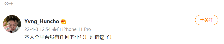而对于网友让其向女主播道歉的要求,@Yvng_Huncho 并未回应,只是在3日针对网友称其疑似用小号骂人一事,发文称,“没有任何的小号,别造谣了。”