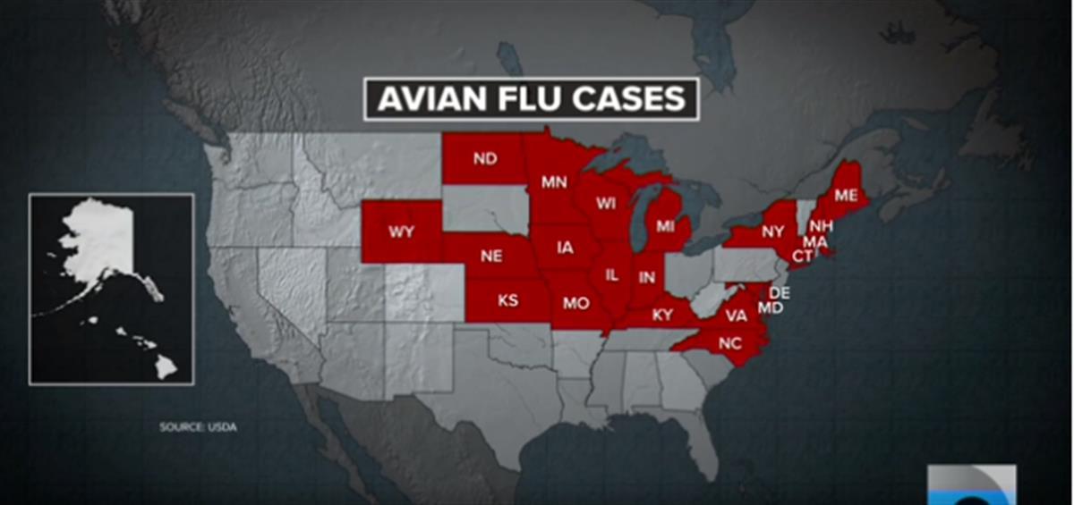 根據美國農業部動植物衛生檢驗局(APHIS)的數據,全美21個州已確認了高致病性禽類流感病例。也就是通常說的禽流感,在商業和散養家禽中引起高致死的疾病。