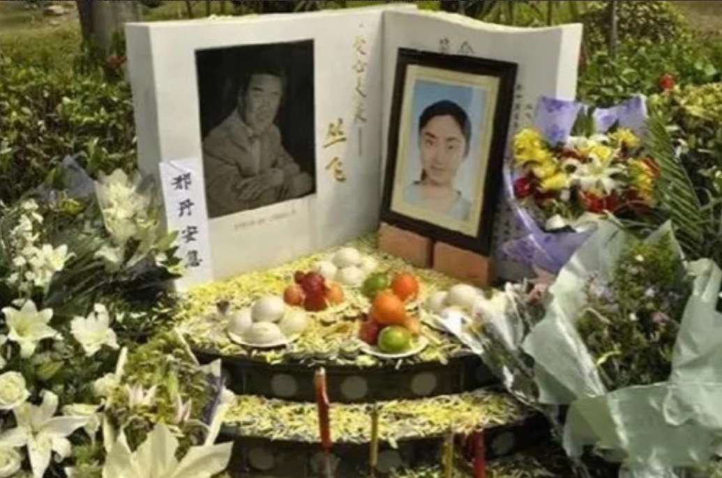 邢丹的骨灰和叢飛合葬在了壹起。