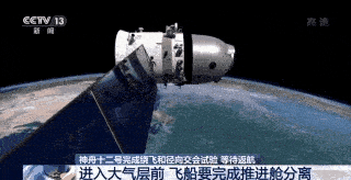 为了让飞船能够更加精确瞄准着陆区域,技术人员实时测定飞船轨道位置及高度后,神舟十二号还需要绕地球飞行十多圈,每一圈约1.5个小时,然后逐步降低轨道。进入大气层前,飞船要完成推进舱分离。