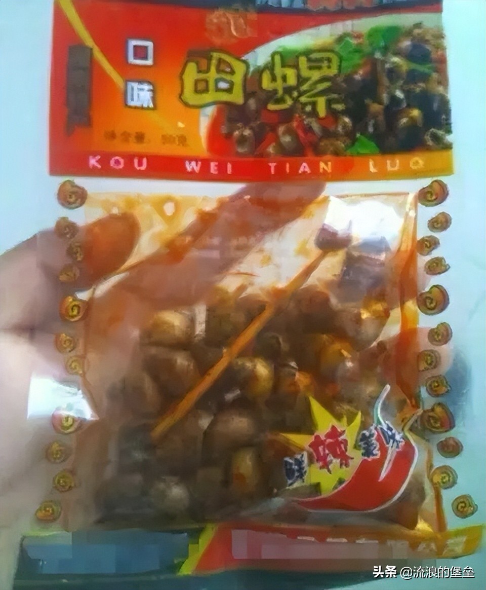 6、伍毛錢壹包的田螺,原來長大之後說壹直沒吃過什麼水產,除了魚這種,其實在小時候就吃過,我記得這個味道呢,還辣辣的味道,特別的好吃,那時候不知道是什麼,只知道好吃,裡面還帶著牙簽,壹吃吃滿手都是油,都不知道蹭身上哪裡了!
