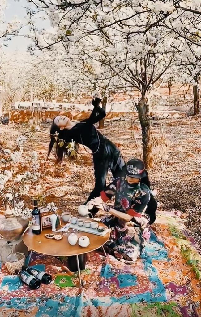 除了在生活上接地气,在艺术方面的杨丽萍也是非常亲近大自然。视频中杨丽萍与友人置身于花海中,周围满是花瓣掉落,场景十分美好。而杨丽萍坐在地上,在桌前泡茶,一举一动都非常优雅。