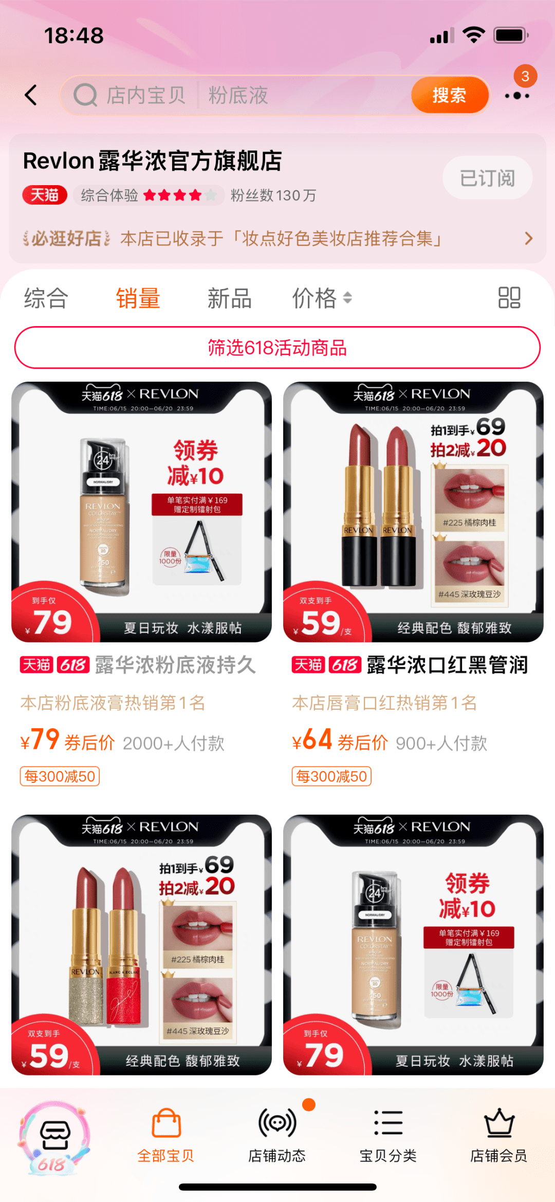 而露华浓的SKU这么多年基本没有大的变化,目前其在淘宝的官方旗舰店中也仅有25个SKU,其中销量最高的依然是经典的持妆粉底液。
