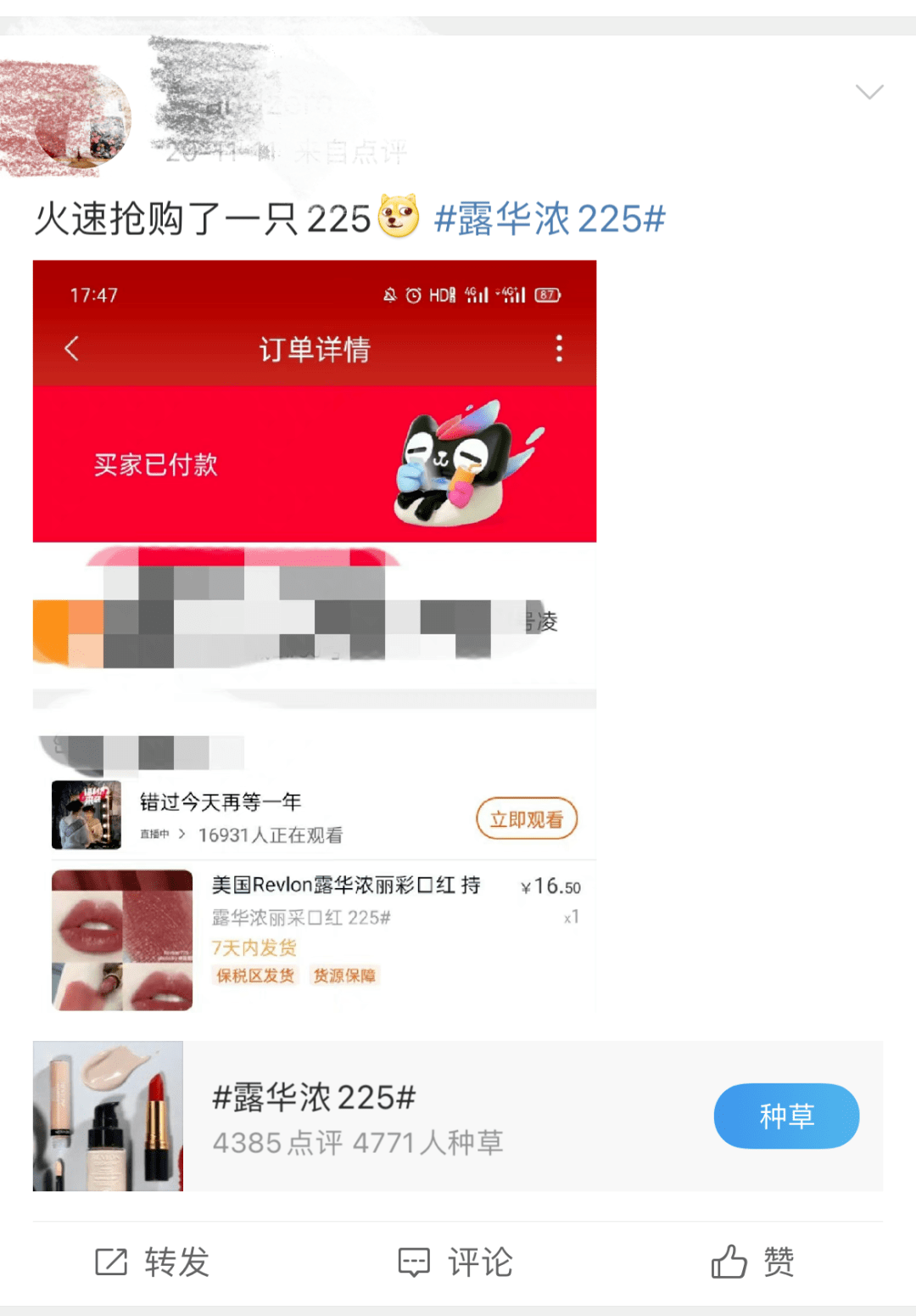 品牌的明星单品“露华浓225”、“露华浓325”等词条也随之冲上热搜,甚至带动了一股抢购热潮。