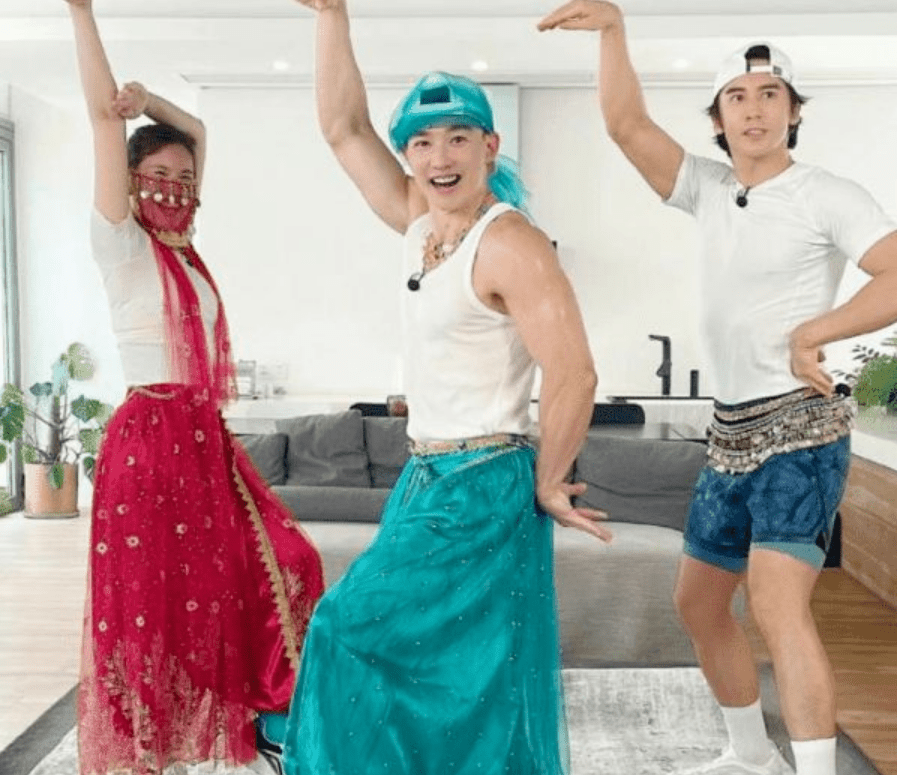 而钟丽缇的老公张伦硕,与刘畊宏是关系不错的好友,他近日则是出现在了刘畊宏的直播间,和刘畊宏夫妻俩一起穿着异域服装跳操。