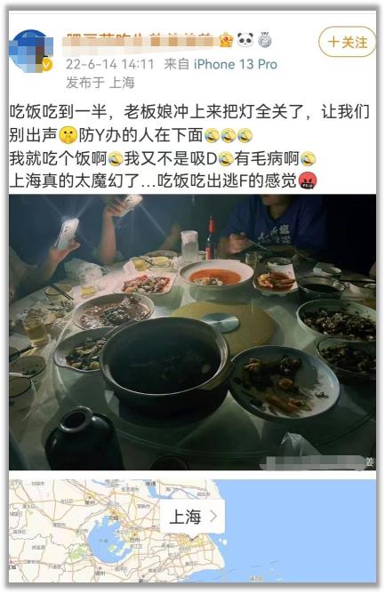 有网友拍了张照片记录下了自己在 " 偷偷堂食 " 的时候发现外面有执法人员的一瞬间,哪怕隔着屏幕都能感受到巨大的压迫感。