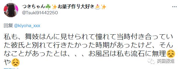 " 我曾经也有一段时间,因为舞妓的表演对这个职业很憧憬,想和当时的男友分手去做舞妓…没想到会有这样的事…(和客人)泡澡我真的无法接受。"