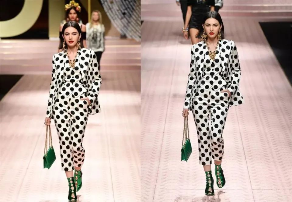 黑白波点小西装勾勒出了Mai的完美身型,台步超稳,显示出了绝对的自信,一个眼神便能够大杀四方。