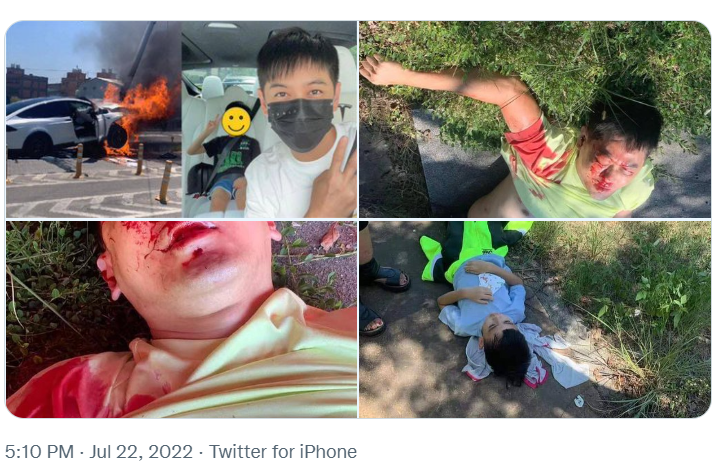 林志穎父子於7月22日在桃園市中正北路遭遇車禍,其駕駛的特斯拉Model X撞上了路上的分隔島。