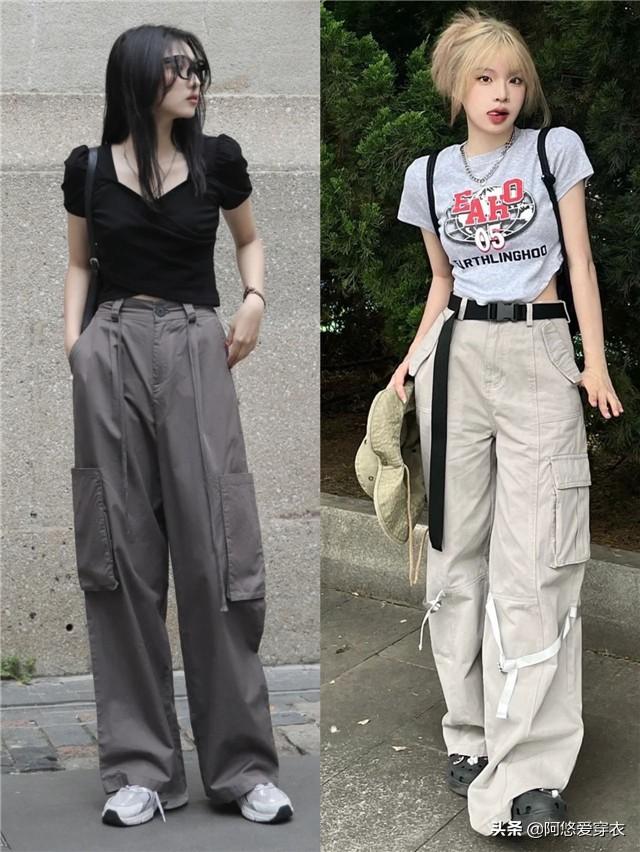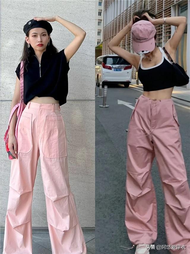 夏日的穿搭就是要多姿多彩,別總是搭配得那麼單調,拘束於壹種風格也會覺得太平平無奇,推薦姐妹們在夏天可以嘗試各種撞色穿搭,幫助我們去改善整體搭配的風格,這些粉色工裝粽子褲也是非常流行的服裝,搭配著黑色和白色的單品,用基礎的配色和流行的配色相結合,真的很時尚。