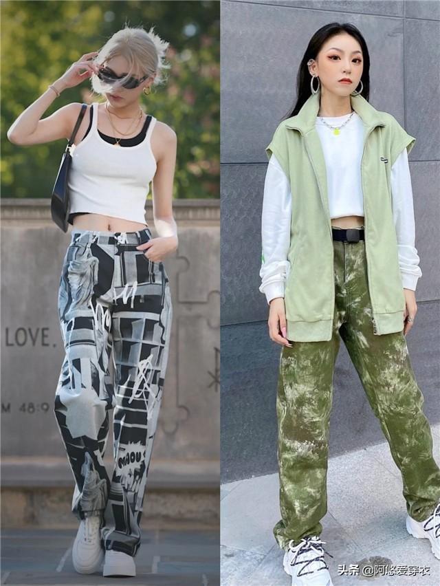 其次,如果你所選擇的粽子褲款式比較個性,結合了這種印花的設計,那如果你要在搭配的時候看上去更時尚,更美,可以去搭配小白鞋,這樣的穿搭會休閒壹些,小白鞋和工裝褲的搭配組合確實很洋氣,也會顯得很有氣場。