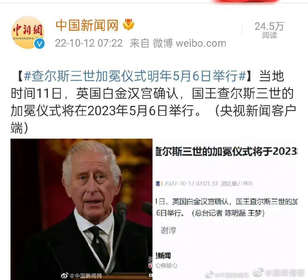 据悉查尔斯三世的加冕仪式要在明年5月6日举行,当了这么多年太子终于扶正,希望他身体健康!