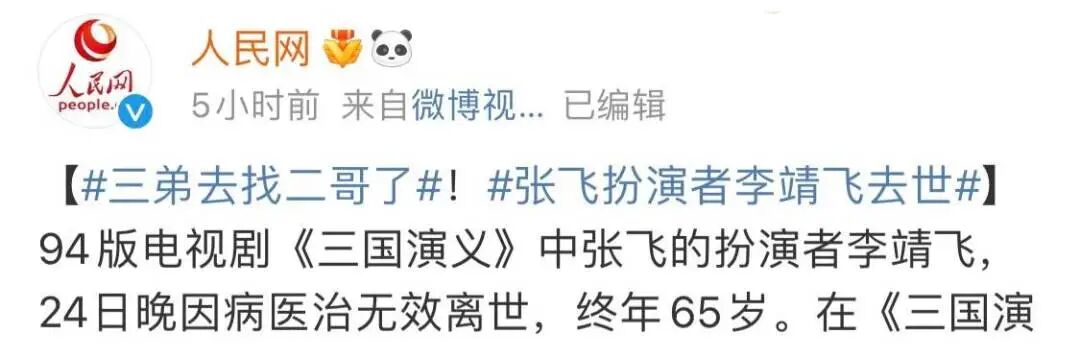 25日,同版《三国》张飞的扮演者李靖飞昨夜病逝的消息再次传来。