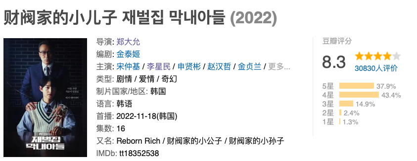 不得不說,李星民把壹個狡猾強勢的老財閥演繹得入木叁分。有網友表示,相比之下,宋仲基的對戲有些薄弱,空洞的眼神和時不時的抿嘴,不時會讓觀眾出戲。