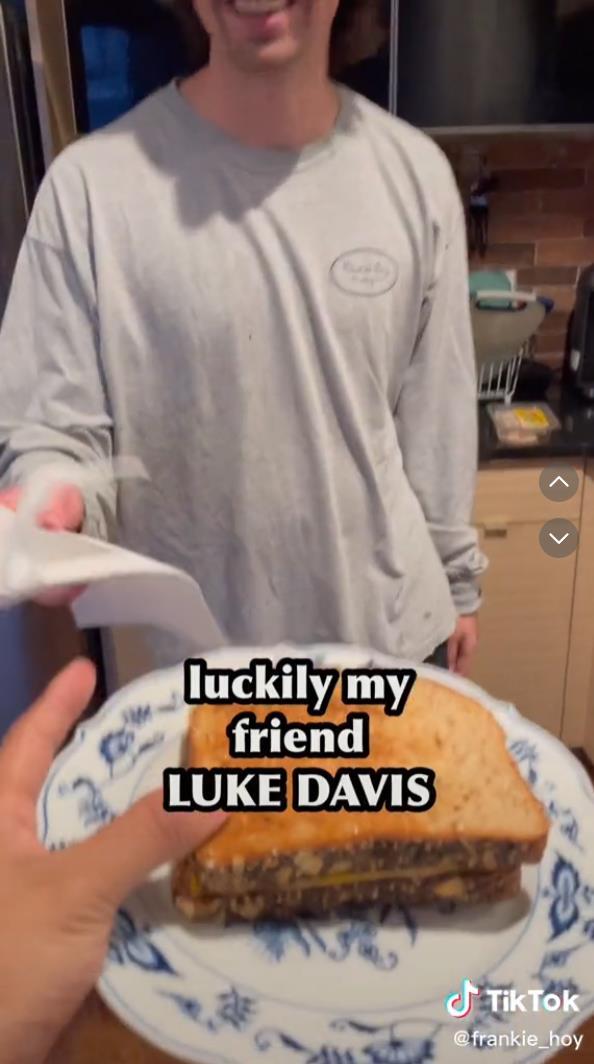 健身完了很餓,好在去找了朋友,在他那邊蹭了個叁明治吃。