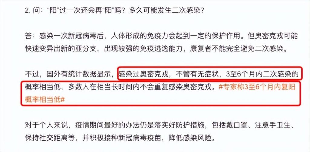 从目前的研究中得知,感染新冠虽然有可能会面临第二次感染,在恢复之后人的免疫系统已经有了抗体,3~6个月再感染的概率很低。但在全社会都努力的防感染,宣传科学方法治疗新冠,做好心理疏导的时候,作为公众人物的冯薪朵没有尽到责任义务也就算了,反过来还主动要求早阳早结束。