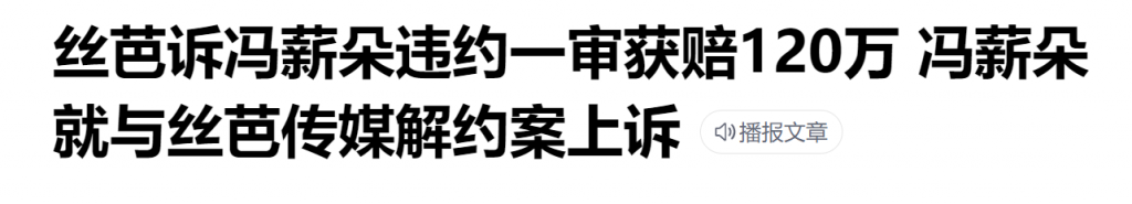 冯薪朵是前SNH48成员,此前曾被经纪公司丝芭公司起诉,不仅擅自脱团,私自从事演艺活动,还跟男艺人传绯闻,丝芭曾以违约为由起诉了她,法院判冯薪朵赔偿120万。