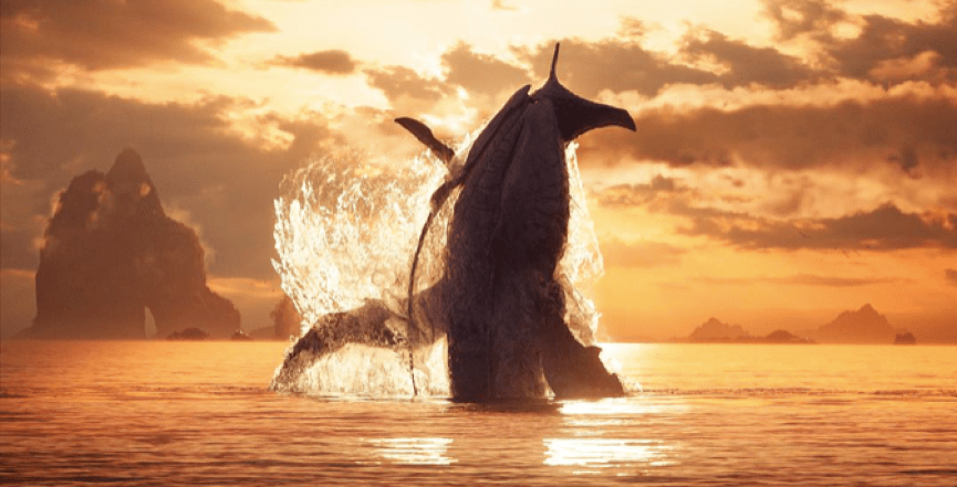 到了这一部,海空双栖、活泼亲人的飞鱼伊鲁,体型庞大、智商极高的巨鲸图鲲,同样带来十足惊艳的视听体验。